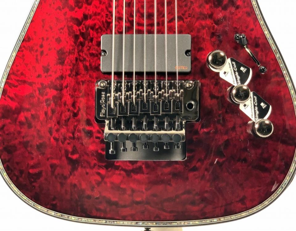 ブリッジにはFloyd Rose 1000 Seriesを搭載。派手なアーミングプレイも可能、七弦ギターの可能性を広げていきます。