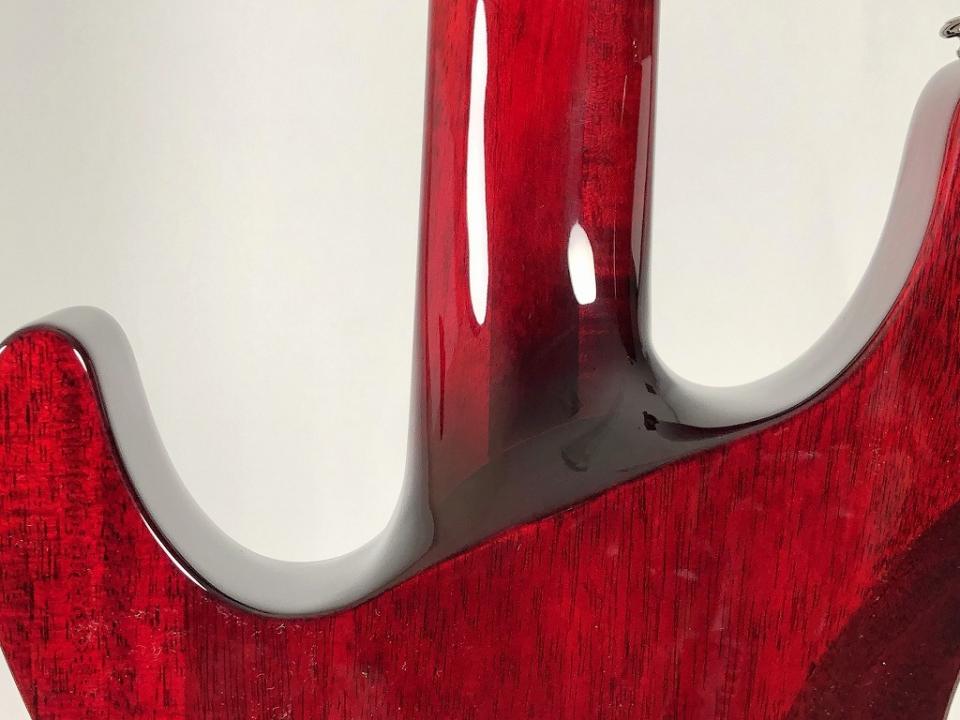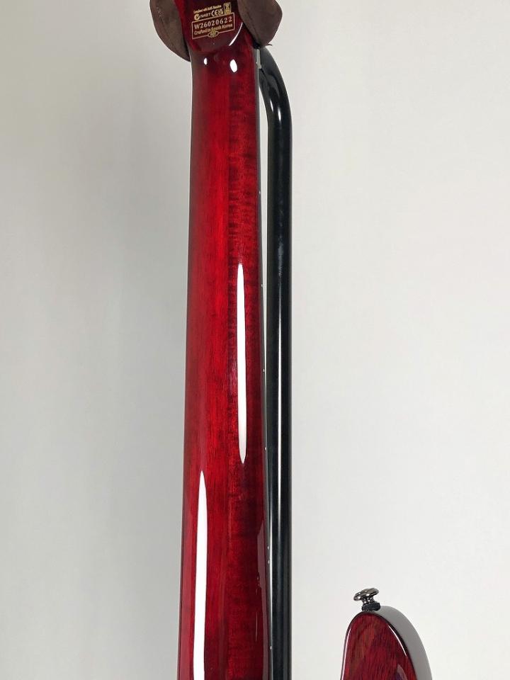 ボディマテリアルはキルトメイプルトップ/マホガニーボディ、ローズウッド指板・3ピースマホガニーネックを採用。ゴールデンコンビのウッドマテリアルは伝統的なロックサウンド、中音域がしっかりと出力でき整った低音域、適度な高音域が特徴。マホガニー材を採用する事により立ち上がりの良さ、またセットネックジョイントを採用しサスティンも確保しています。グロス仕上げは高級感があり、ステージでも目立つ存在となります。