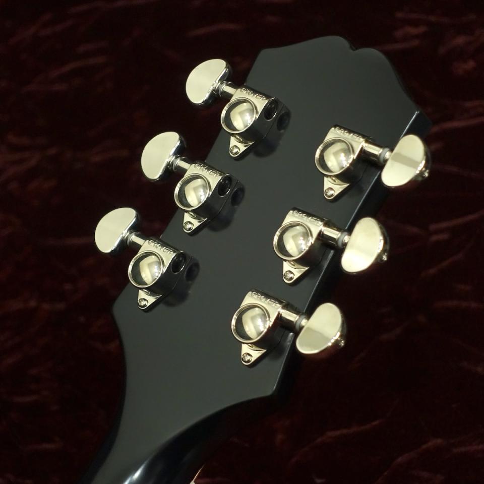 ヘッドストックには人気の60s カラマズーシェイプを採用し、ボーン・ナットと滑らかな動作を実現するGrover Rotomaticチューナーを装備することで、チューニングに費やす時間を減らし、演奏に集中できる設計となっています。ベリーアップ形状のローズウッド・ブリッジにはボーン・サドルとアイボリー・プラスチック製ブリッジ・ピンを採用しています。新たに設計されたピックガードはエポキシ・スタイルを採用し、伝統的なティアドロップ・シェイプとトータスシェル・カラーを備えています。