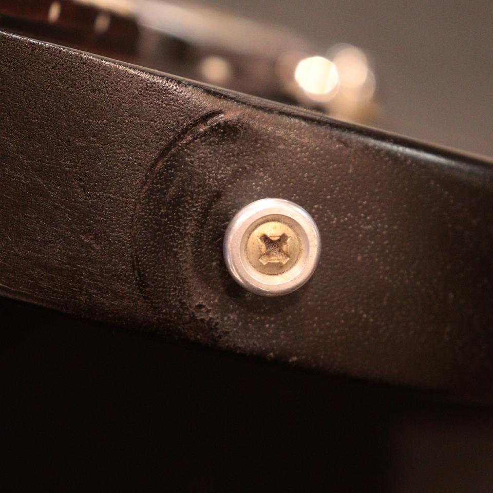 ストラップピン付近にストラップに因る塗装の変化が見られます。トラスロッドカバーは欠損しています。
