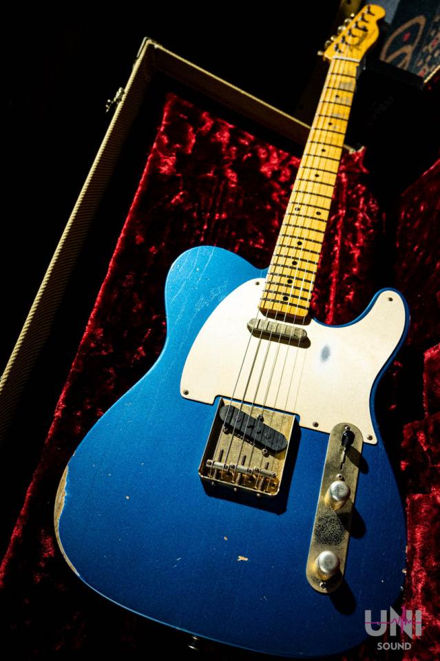 今回入荷した52テレキャスターはレイクプラシッドブルーにフィニッシュされたアッシュボディに、メイプル1Pネックといった、シンプルでトラディショナルなウッドマテリアル。圧巻のヘヴィーレリック仕様です。
