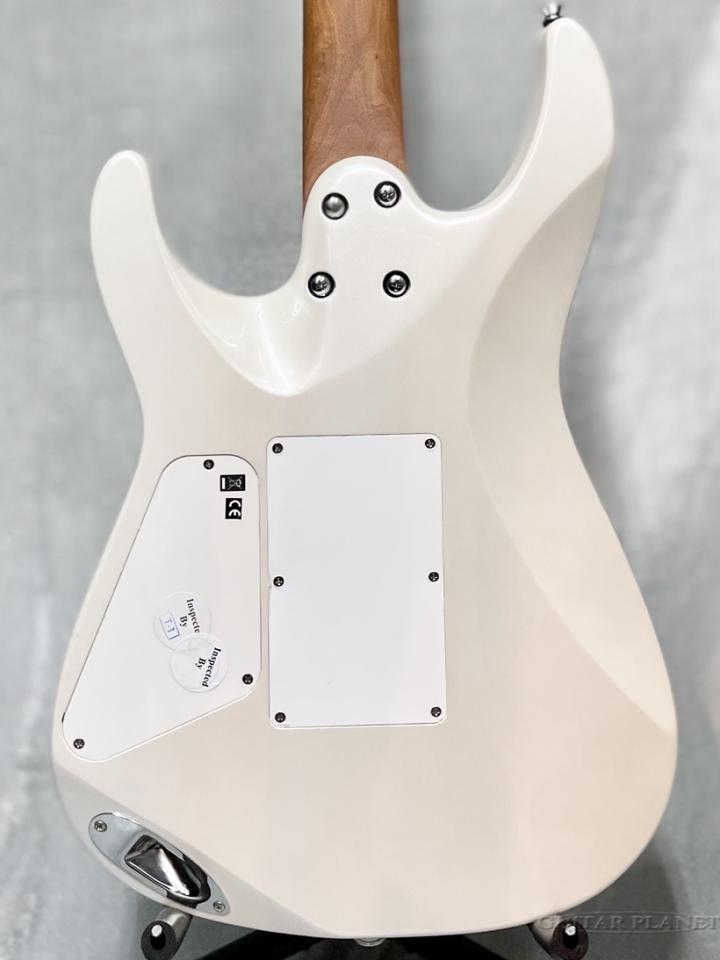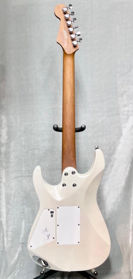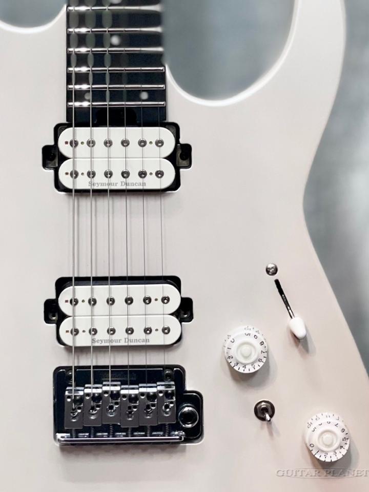 まるで真珠の様なパールホワイトカラーのCelestial Silkがエボニー指板に良く映え、PUもルックスに合わせたカラーをチョイス等統一感のある高級感が感じられるモデルです。