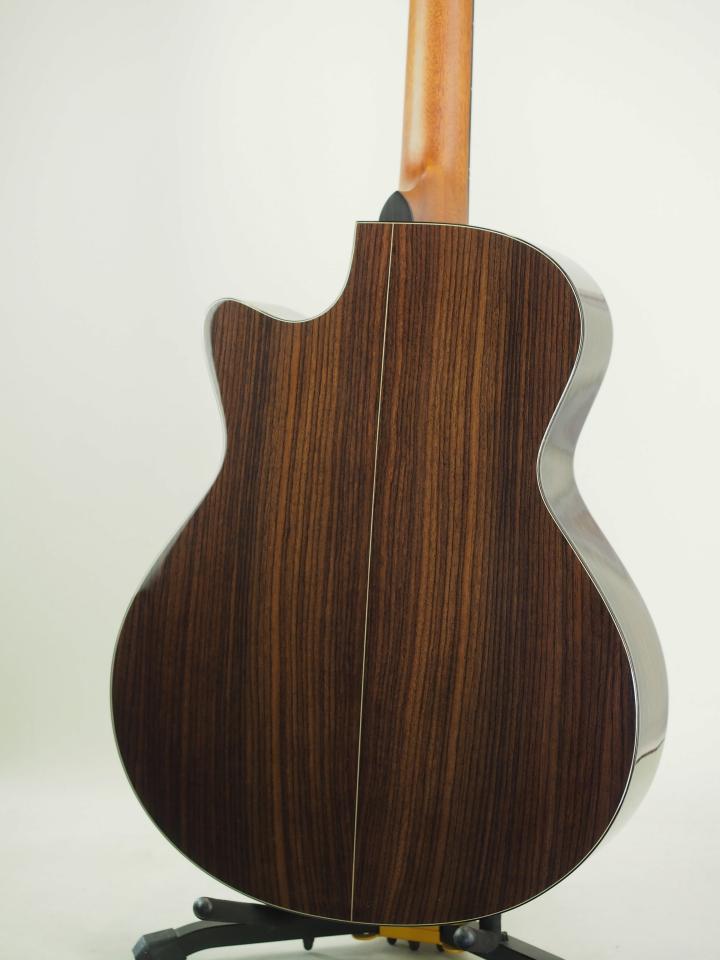 Yellow Gc-AR は、グランドオーディトリアム・カッタウェイのボディに、アディロンダックスプルースとインディアンローズウッドの組み合わせ。アディロンダックスプルースの特徴「他に類のない絶対的な音量・音圧と力強さ、たっぷりとしたリッチな響き」を一聴して感じることができ、このギターの明確なアイデンティティとなっています。それでいて大味なキャラクターにはならず、低音寄りに重心をコントロールされた理想的な響きのバランスで、ワイドレンジで艶やかさと色気を備えたフォルヒらしいサウンドを生み出します。