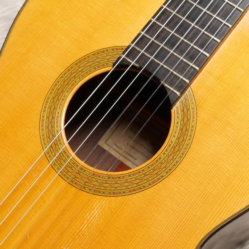 マドリッドの伝統的なギター製作を継承する製作家ラファエル・ロマンの作。手頃な価格でありながら重厚でクリアなまさにマドリッド系と言える音色を備えた1本、。