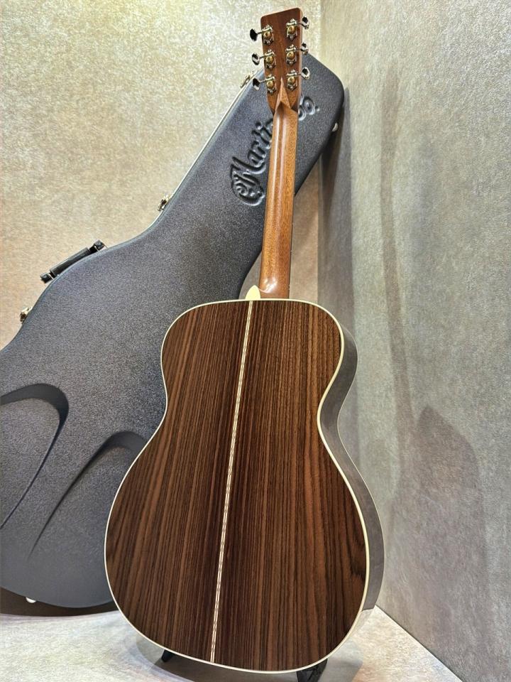 当個体は、000サイズならではの俊敏なレスポンスと、28スタイル特有の倍音感とバランスの良さが感じられる一本です。