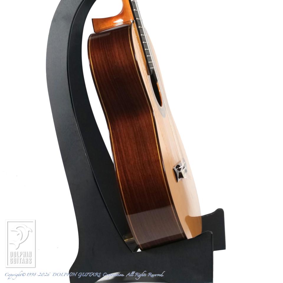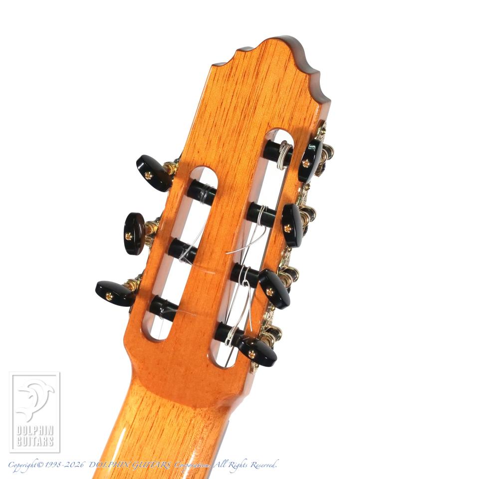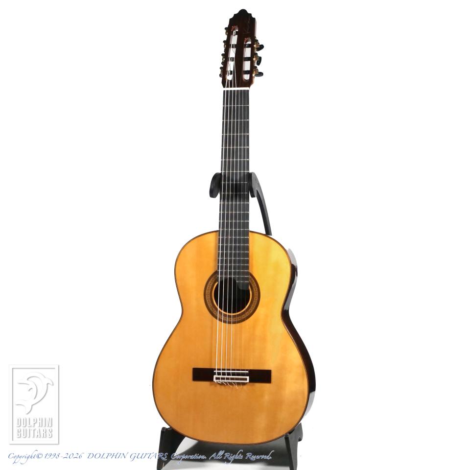 いわゆるクラシックギターとは違い、タイトでハリのあるテンション感、深みがありつつも乾いていて、俊敏に突き抜ける高音域が特徴です。また、SAVAREZ社との共同開発によるシグネイチャー弦が張られており、7弦はラ=A、シ=B、ド=Cに対応するよう設計されております。1〜6弦のサウンドにも7弦の共鳴が生まれ、低域に広がる独特のコード感からは新しい何かが生まれそうです。
