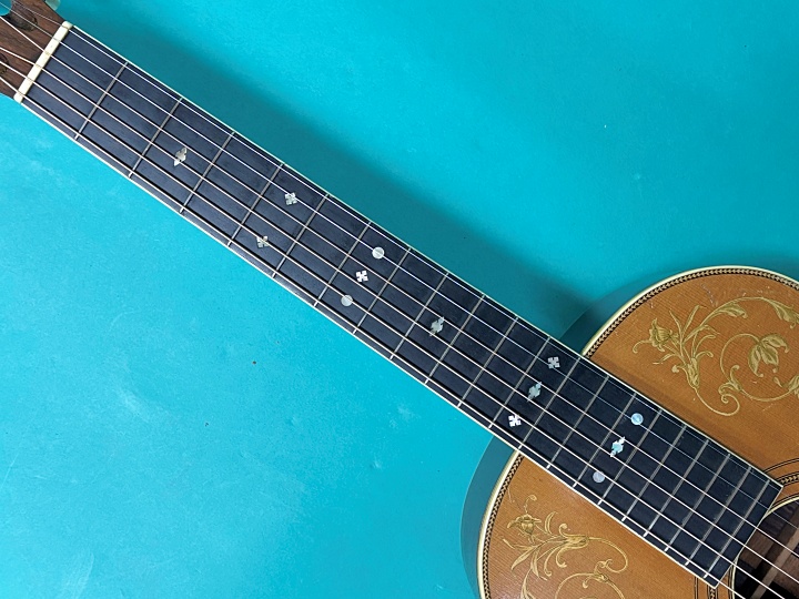 トップはアディロンダックスプルース、エボニー指板、エボニーブリッジです。