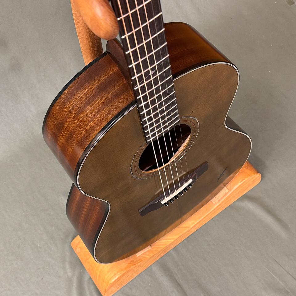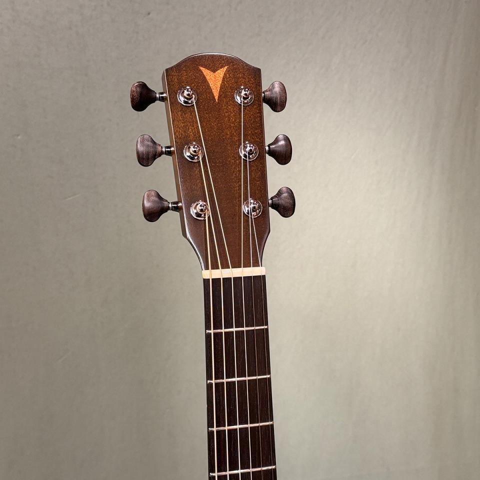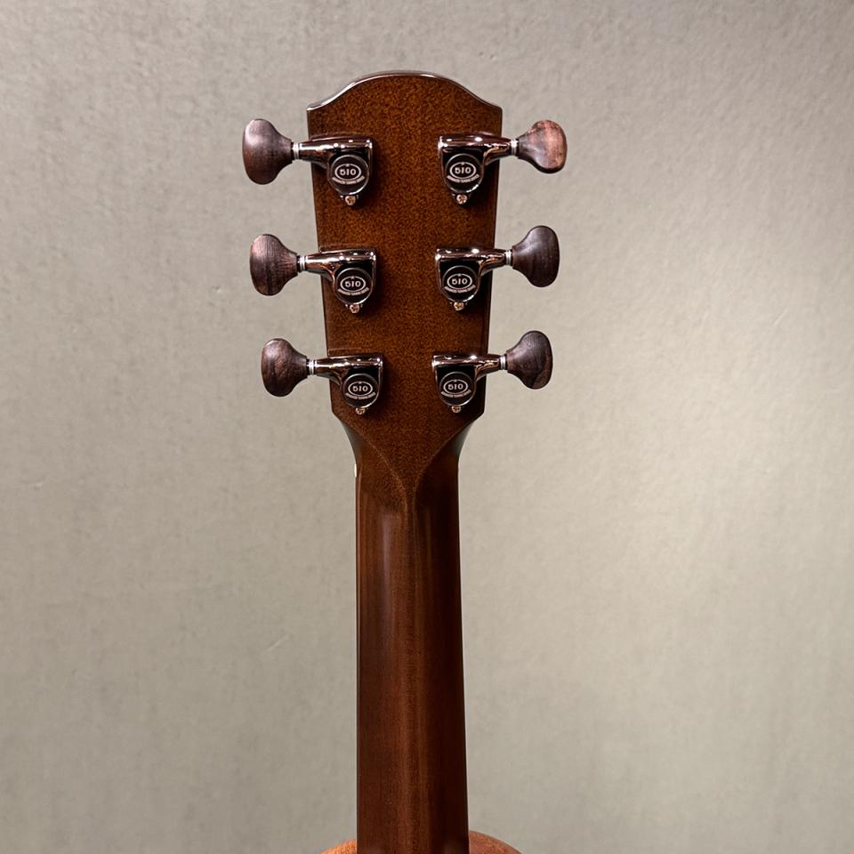 トップ材にはシトカスプルース単板、サイド&バックにはマホガニーを採用し、反応の良い立ち上がりと温かみのある中低域を両立。