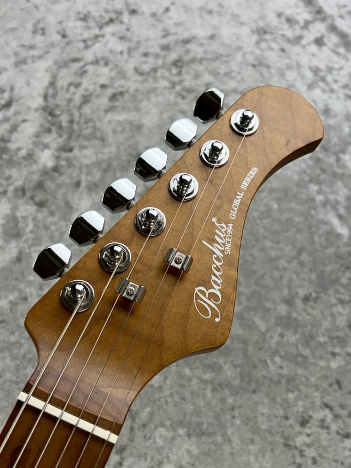 ローステッドメイプルをネックと指板に採用し、1ランク上のコンポーネントを搭載した実戦仕様の1本に仕上がりました。Bacchus Global seriesの高いコストパフォーマンスを実感出来る、細部までこだわりが込められたスペックです。