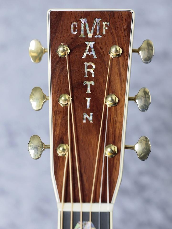 1904年にそれまで最上位モデルであったStyle42よりもさらに豪華な装飾を持ったStyle45が登場。はじめは0、00、000サイズでの発売となり、当時は指板インレイもStyle42同様のスノーフレーク・キャッツアイインレイでした。後に生まれるドレッドノートサイズに合わせてカントリー歌手のジーンオートリ―の為に作られた一本を皮切りに1933年にから1942年までの9年の間に91本のD-45が生産されました。長らく生産がされず時が経ち、1968年にMartinヒストリーの研究者マイクロングワースの提案で再生産が始まります。ボディ周りと指板のハイポジション迄装飾で縁取られ、サイド・バックにもインレイの縁取りが施された豪華な外観。指板イのポジションマークに大きく印象的なキサゴンインレイとしたおしゃれで手の込んだインレイとなっている点が特徴です。現在でも厳選された最上級の木材を使用して作られるモデルとして非常に人気の高いD-45。Style45が最高峰と言われる所以は美しい見た目や、価格から来るものではなく、間違いなくMartinのアコースティックギターの中でも優れた響きを持つギターであるが故のものです。低音から高音まですべての帯域で美しく荘厳なひびきを持ち、1ストロークだけでも圧倒的な存在感が生まれます。選び抜かれた木材の外観も実に美しく、理想のギターと言えるでしょう。