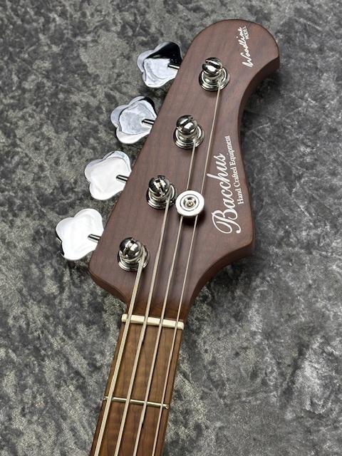 ローステッドメイプルとはメイプルを高温で加熱処理して材の中の水分や油分を揮発させることにより剛性を高めた材。ネックに使用されるとその効果は安定性だけでなくサウンドにも及び、豊かな生鳴りと経年変化したビンテージのようなこなれたトーンを生み出します。高級機種で使われることの多いこの本格派仕様をリーズナブルな価格帯に落とし込んだBacchusの製品ラインナップです。
