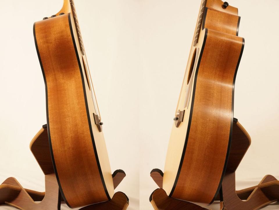 トリファイド加工により、木材内の水分や樹脂が調整され、長年弾き込まれたような乾いた響きと優れたレスポンスを実現。これにより、ダイナミックレンジがさらに広がり、ストロークやフラットピッキングでは力強く歯切れの良い音色、フィンガーピッキングでは繊細で温かみのあるトーンを生み出します。