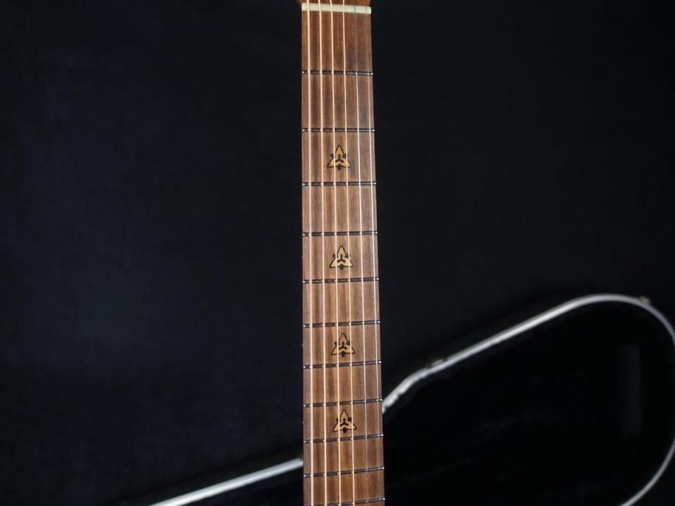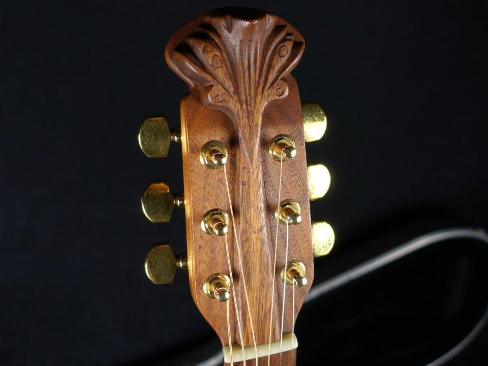 ゴールドウェアのペグ、ウォルナット材を用いたブリッジ&ヘッドストックの装飾が上位機種らしい品格を醸しだしており、この彫刻にときめいてしまうユーザー様が多いのも納得です。