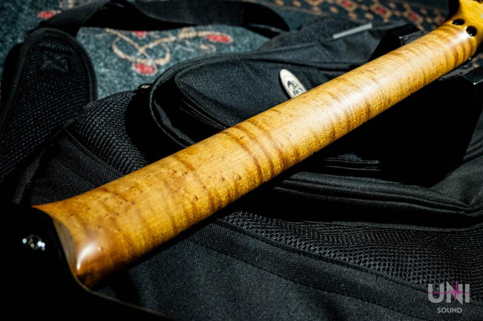 6弦側に丸みを持たせ、1弦側をスリムに仕上げた独自の非対称ネックは非常に握り込みやすく、コンパクトなオリジナルボディとの組み合わせで抱えた際のバランスも抜群です。