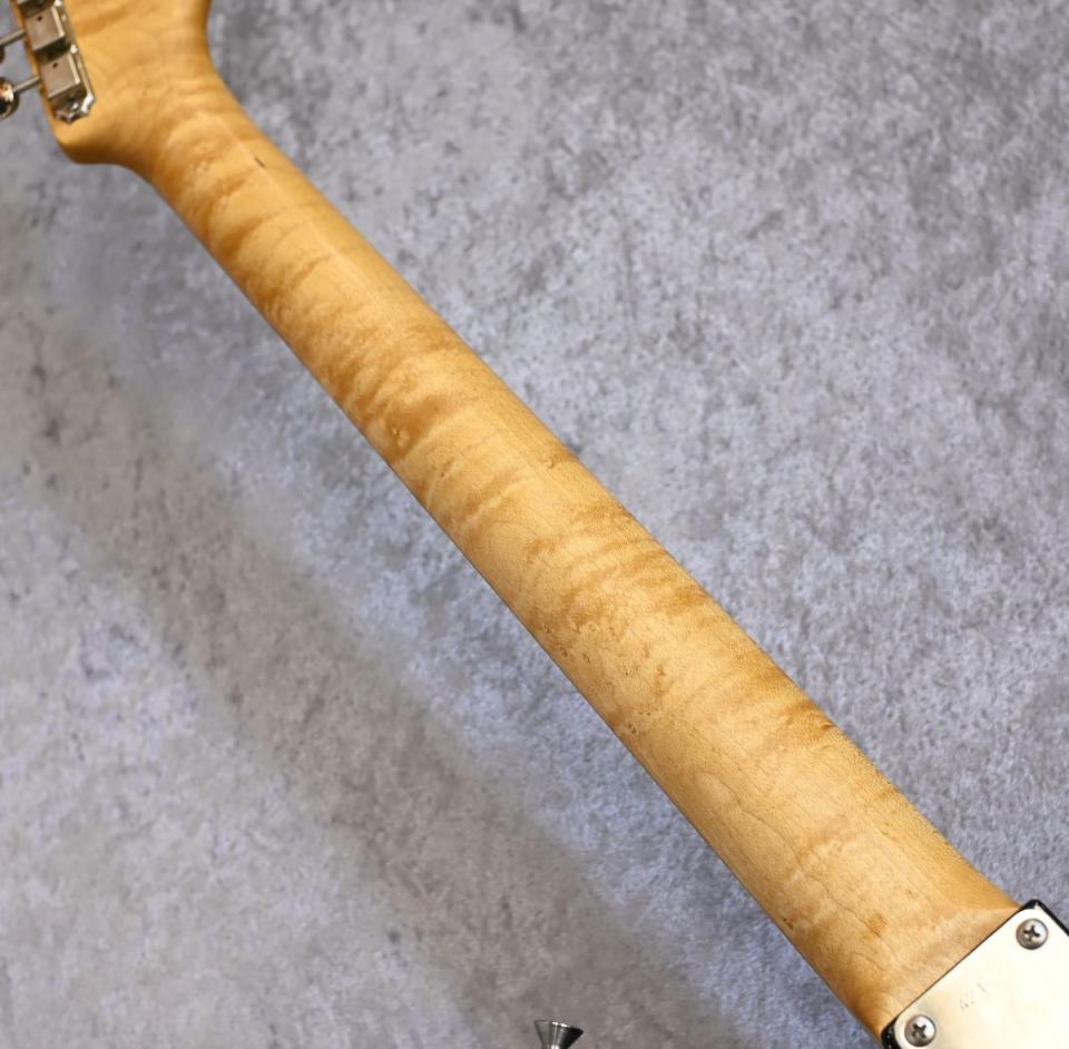 贅沢な1Pアルダーボディ、杢の美しいフレイムメイプルネック、ローズウッド指板のトラディショナルな組み合わせ。