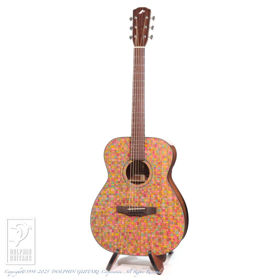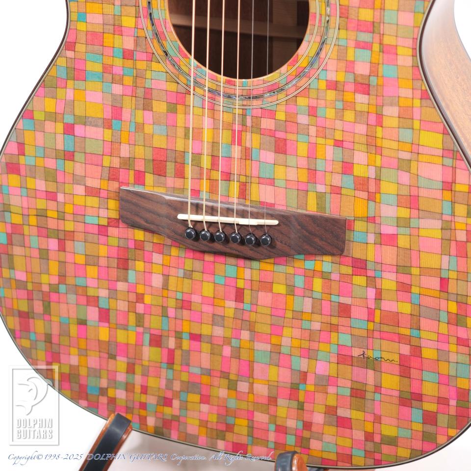 本器はMORRISとアーティスト・フジキカオルとのコラボレーションモデル、フォークサイズ(000サイズ)のFE-ART CUBE。