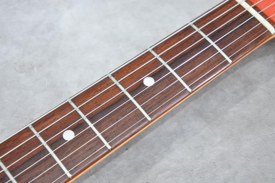 この個体は1965年スタイルをベースにしたモデルで、ラウンド貼りローズ指板のしなやかな鳴りが特徴。