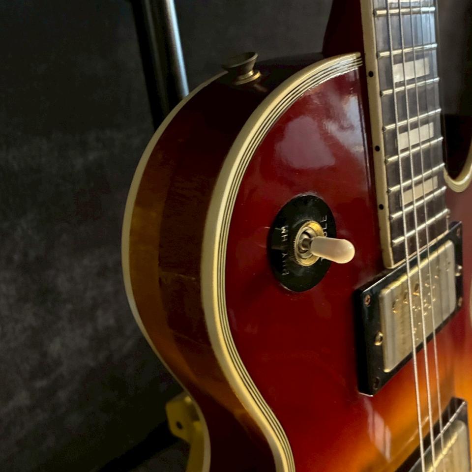 今回はEG500Rが入荷しました。今時見ないチェリーバーストのレスポールカスタムです。大きいブロックインレイやヘッドのダイヤモンド、バインディングに目を惹かれます。この年代にしては打痕や傷が少ないのも良いポイントです。