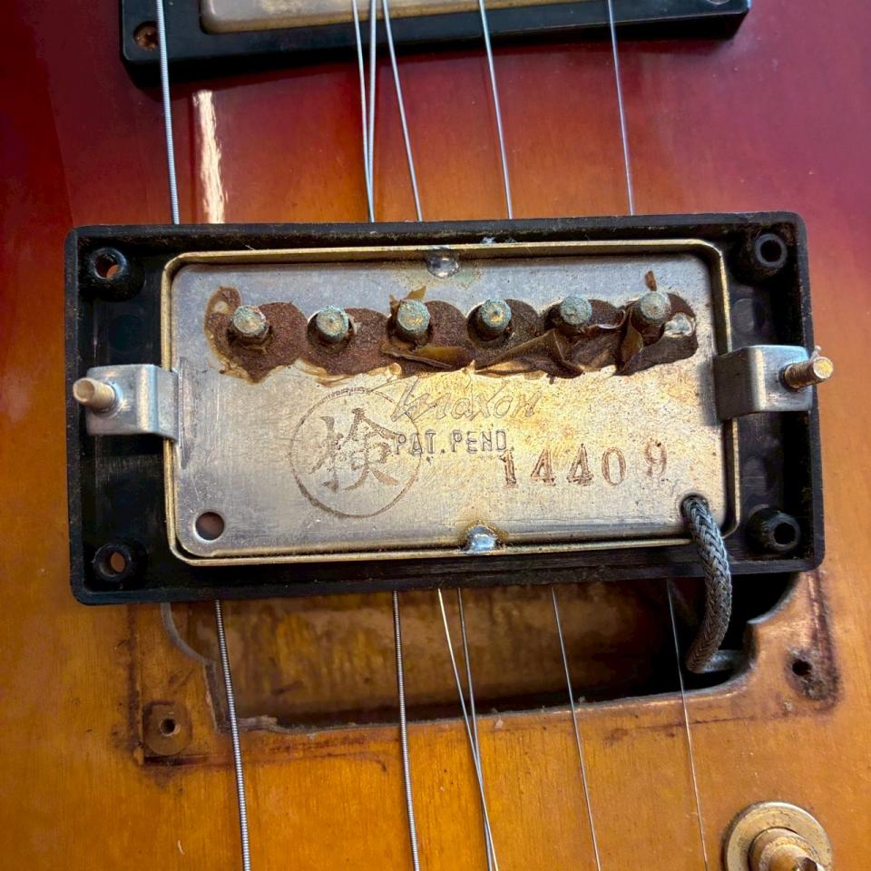 ロゴから73-75年製と考えられますが、ピックアップの年式はスタンプからフロントが73年とリアが74年と思われ通称「グネコ」ロゴのものになっています。ロゴが移り変わる過渡期のものと考えられます。
