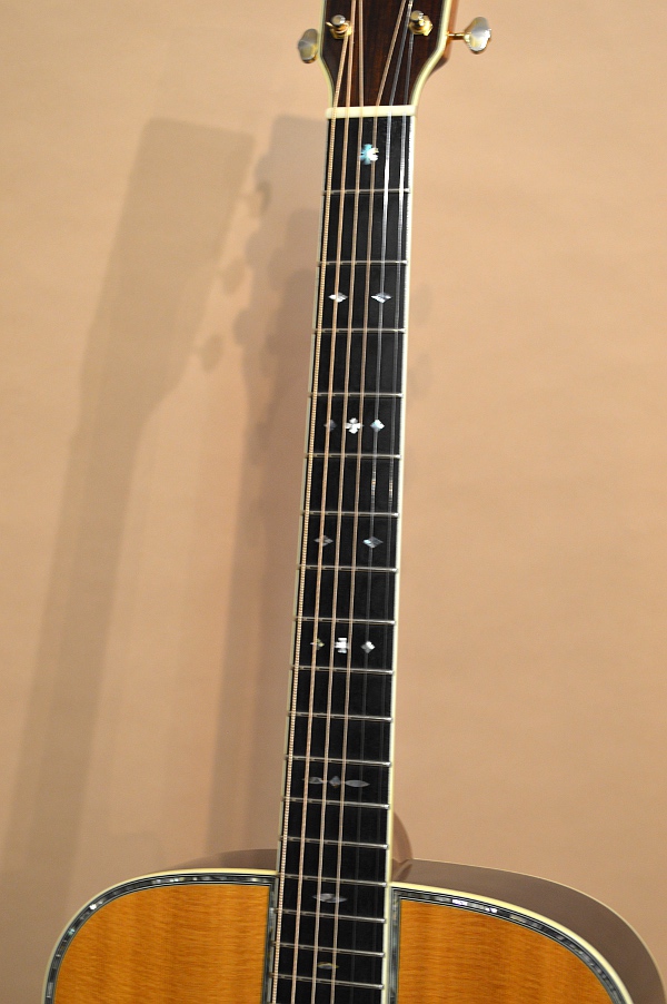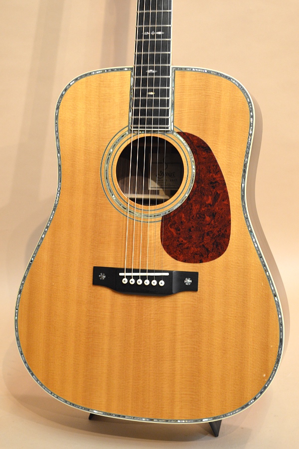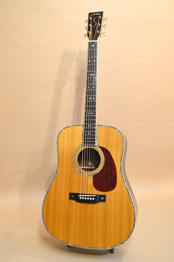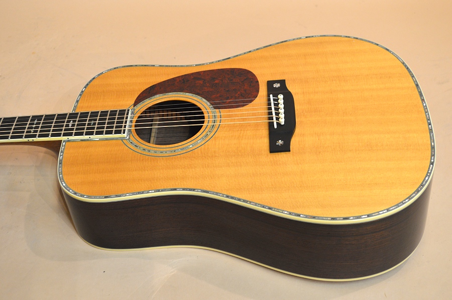 ソリッド・シトカ・スプルースTOP、ソリッド・ローズウッドSIDE&BACK、マホガニーNECK、エボニー指板&ブリッジ、スキャロップ・ブレーシング、45スタイル・スノウフレイク・インレイ、42スタイル・アバロン・ロゼッタ&トリム、実測43.5mmナット、650mmスケールのドレッドノート・ボディー。