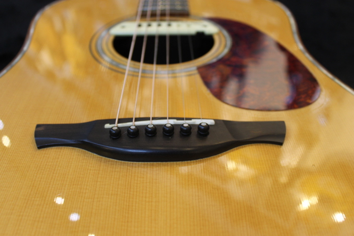 トップ材の振動性を高めるスキャロップ・ブレイシングが音の深みを増大し、薄い塗膜のラッカー塗装