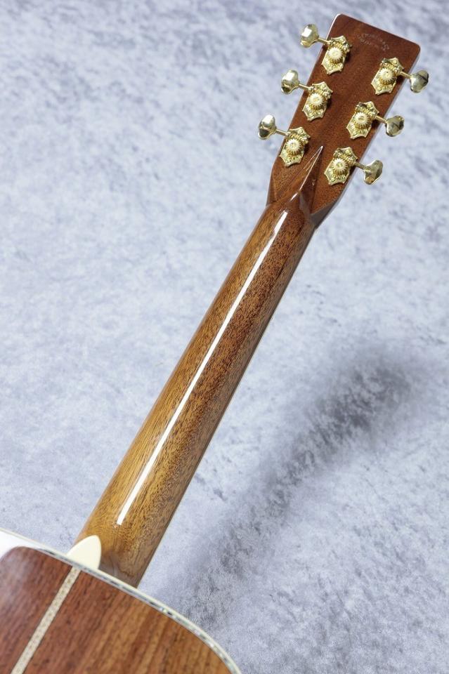 木材とネックシェイプに拘った当店オリジナルのカスタムオーダー品。トップ板の経年による色味の変化を楽しめるクリアフィニッシュのトップに、最高グレードの杢目が整った美しいアディロンダックプルース。サイド・バックには同じくMartin社所有の最高グレードのグアテマラローズウッド。広めの木目のアディロントップと、明るい色味と力強い木目のグアテマラローズウッドは眺めているだけでも楽しめてしまう美しさ。