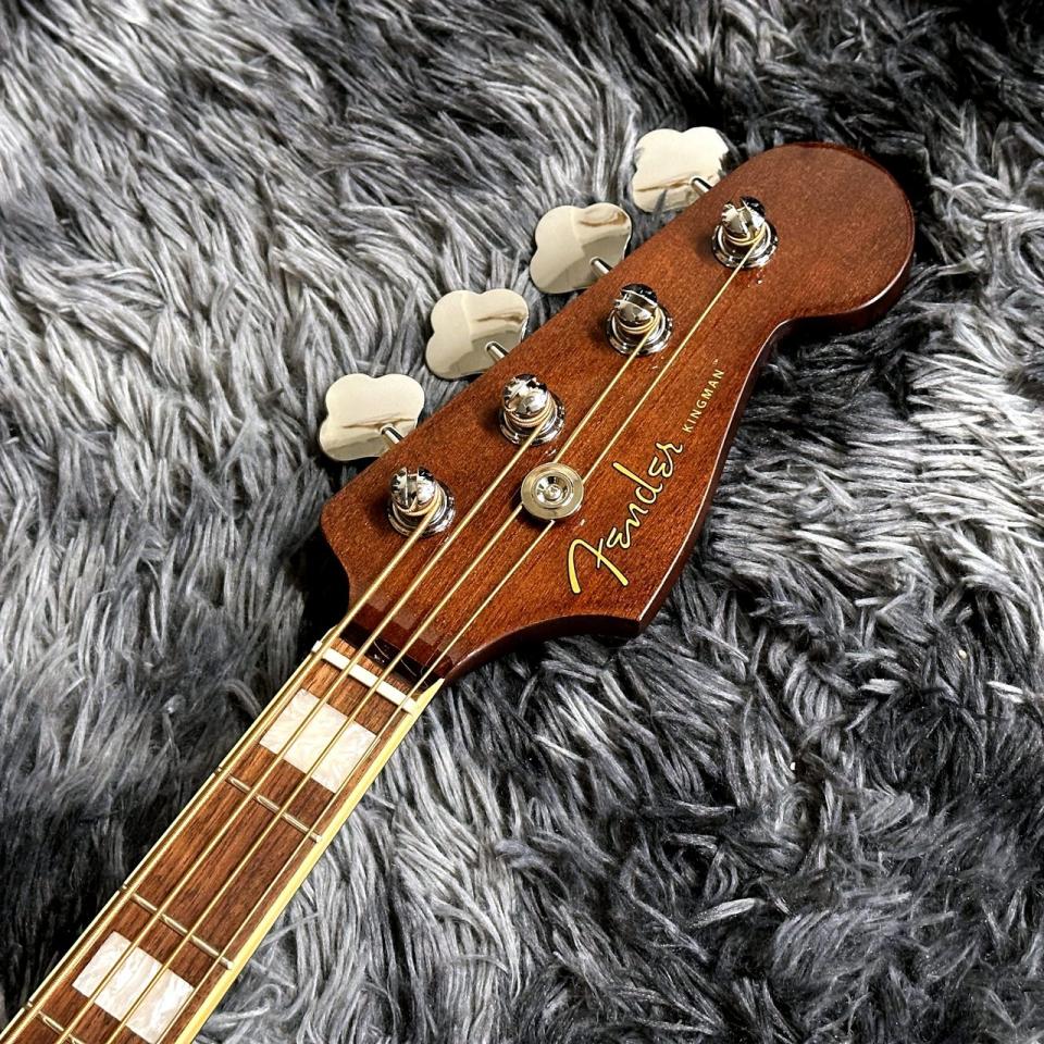 Xブレーシングが施されたソリッドスプルーストップとサペリ材のバック&サイドで構成されたKingman Bassのコンパクトなミッドサイズオーディトリアムボディは、深くパンチのあるアーティスティックなトーンを生み出します。バインディングとブロックインレイを施したナトーネックはスリムなCシェイプのJazz Bassネックを採用し、演奏しやすい30インチのショートスケール、快適な1.5インチのナット幅、4インラインヘッドストックなど、フェンダーのエレクトリックベースDNAから生まれた特徴的なルックスを備えています。また、スムーズで正確なチューニングを可能にするヴィンテージスタイルのチューニングマシン、繊細なハーモニクスを生み出すGraphTech NuBoneナットとサドルなど、注目すべきディテールが満載です。また、Fishman Presys+プリアンプシステムを搭載し、アンプやレコーディング機器に接続した際に、楽器本来のサウンドを忠実に再現することが可能です。