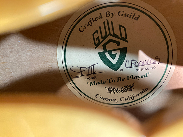 16-1/4インチ幅、2インチ厚のフルホロー構造のシングルカッタウェイボディシェイプに、ラミネイト・メイプルボディ、マホガニーネック、ローズ指板といったウッドスペックが採用。当モデルはオリジナルP-90を2発搭載、ギルド・オリジナルアーム搭載の仕様のUSA製。製造は2000年代前半となっております。