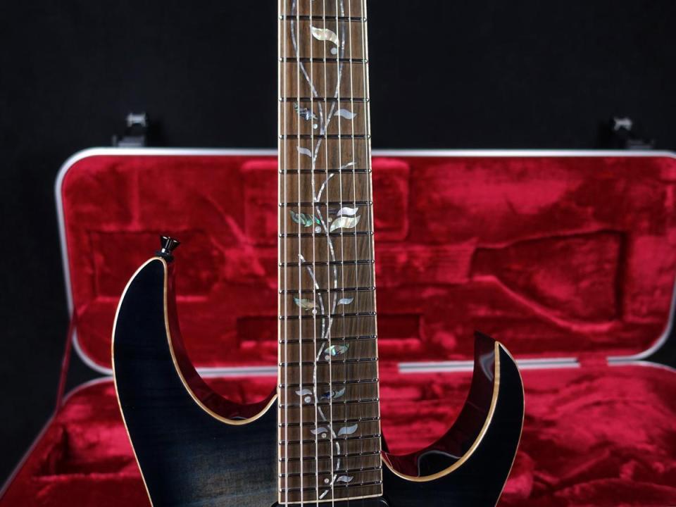 ネックはメイプル・ウォルナットを用いた5pc構造に、テクニカルプレイヤーから絶大な支持の“RG j.custom Wizard-7”ネックシェイプ、スムーズなフィンガリングをサポートするネックバックの“Velvetouch”フィニッシュなど、素晴らしいネックフィーリング。そして“Tree Of Life”インレイはより一層の満足度を演出してくれるでしょう。