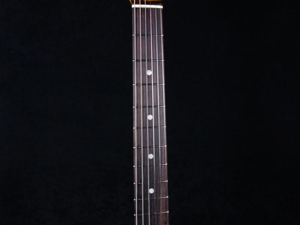 1965 Stratocasterは、1965 “C”シェイプメイプルネックに、大きめのパールドットインレイを採用したラウンドラミネイトローズウッド指板を備えているのが最大の特徴です。