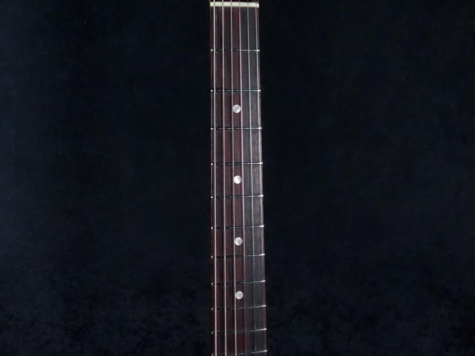 1965 Stratocasterは、1965 “C”シェイプメイプルネックに、大きめのパールドットインレイを採用したラウンドラミネイトローズウッド指板を備えているのが最大の特徴です。