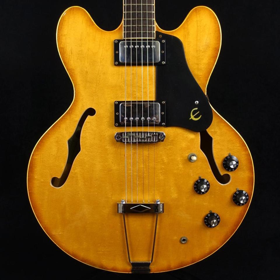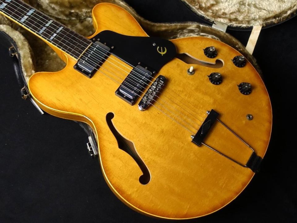 1970年代から80年代中ごろ辺りまで、マツモク工業が生産していた時代の日本製エピフォン。 その中でも非常に高い評価と人気の『ブルーラベル』のRIVIERA。シリアルナンバーから判断して1980年製の中古品になります。