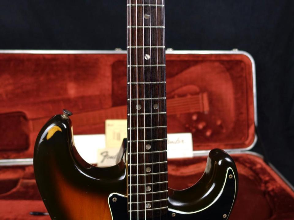 1954年デビュー時より現在に至るまで数えきれないギタリストに愛される"Fender Stratocaster Sunburst"ラージヘッド、バレットナット、3点留めネックが70年代を象徴的な仕様が印象的です。