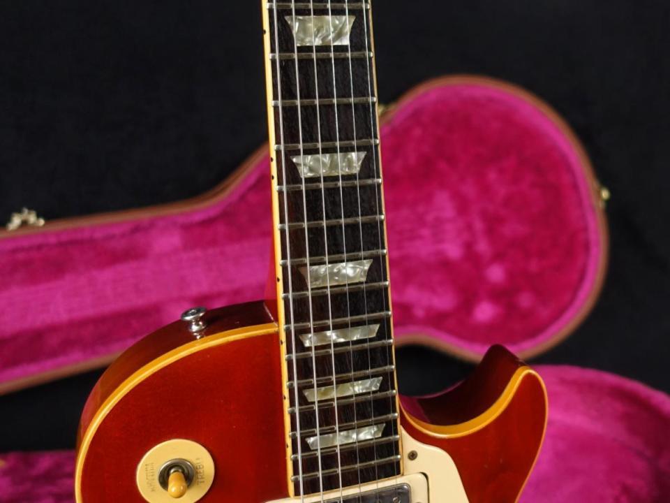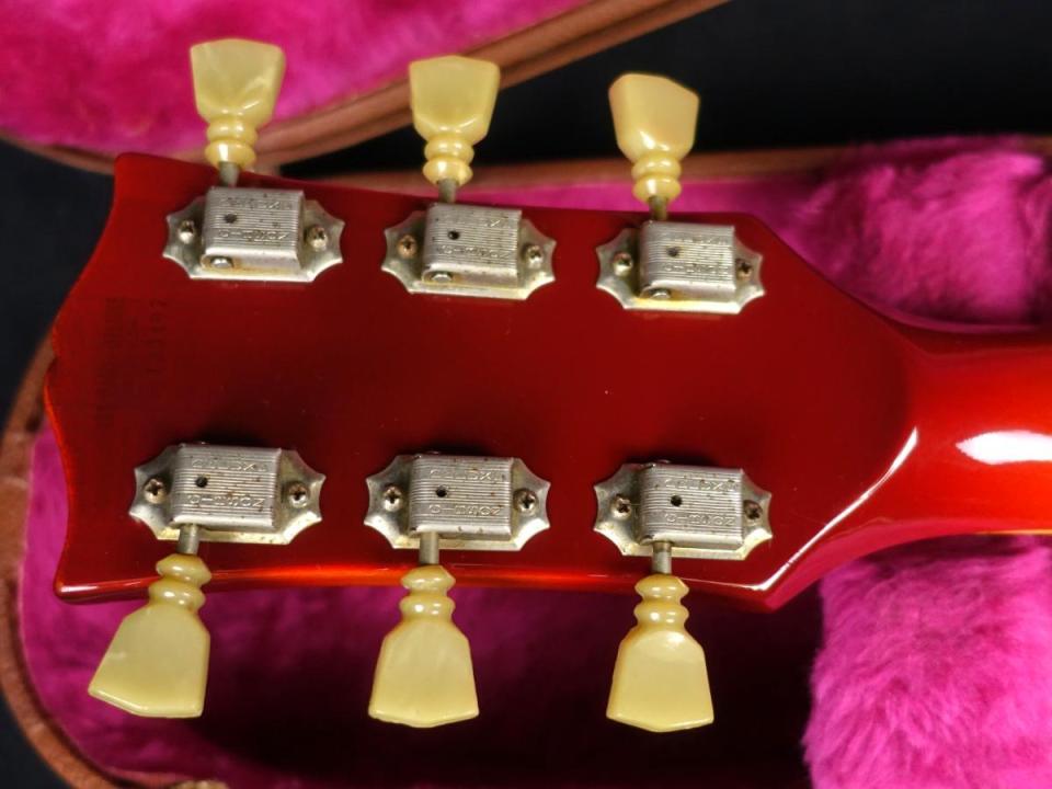 3弦ペグシャフトの変形、ネック折れの修理歴が見受けられる他、ストラップピン交換、ナット&フレット交換、ポット及びコンデンサー交換(4つ全て78年の50週のCTS製)など、パーツ交換や修理・使用感が多数見受けられるプレイヤーズコンディション。