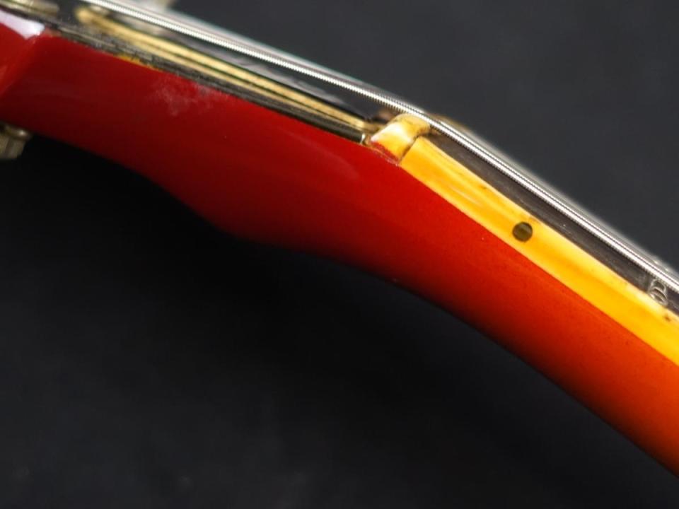 製造から40年以上が経過しているギターということで全体に無数の打痕や弾き傷、バックル傷、ウェザーチェック、塗装の目痩せ、金属パーツのくすみ、