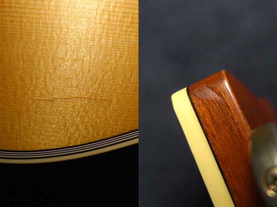 また、ボディトップに約3cm程の塗装クラックが確認できますが、木部への割れはなく使用上の問題はありません。