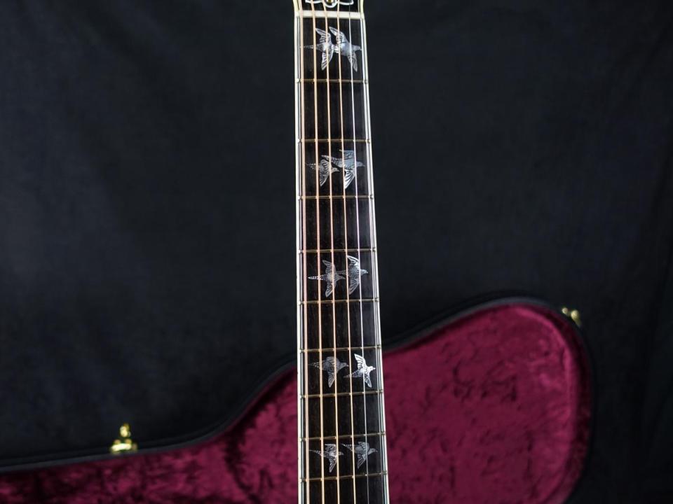 スクエアショルダー・ボディの伝統的なダヴ・シェイプに、トップ材にはシトカ・スプルース、サイド&バックにフレイム・メイプルを使用。