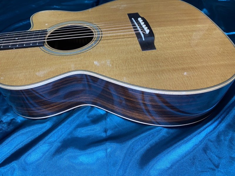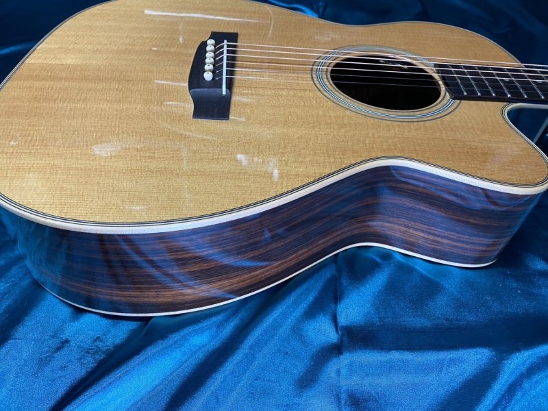 表面板にはシトカスプル-ス単板が用いられ、粒の揃った芯のあるサウンドが特徴です。