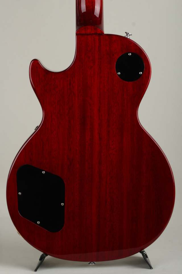 鮮やかな杢目が出たフィギュア―ドメイプルトップのマホガニーボディにセットネック構造でジョイントされたマホガニーネック、指板にはローズウッドを使用、軽量化を目的としたウエイトリリーフが行われていない完全なるソリッドボディ、塗装にはニトロセルロースラッカーを使用しております。