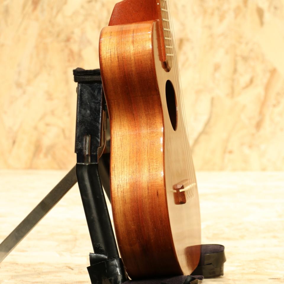 アルヴィン・オカミにより1995年に創設されたコアロハ・ウクレレ。現在は長男のアランと、次男のポールを中心に少数精鋭の職人たちで運営されております。今ではハワイを代表するウクレレメーカーの一つとなったコアロハ。モダンなルックスデザイン、優れた演奏性で、他のメーカーにはないハイファイでクリア、そしてなんと言っても大きな音量が特徴。本器はコンサートサイズのスタンダードモデル”KCM-00”。2010年製USED品です。ハワイアンコアボディ、エボニー指板&ブリッジ、ロゴ入りロトマチッククロームペグ、ドット指板インレイ。モダンなルックスデザイン、優れた演奏性で、他のメーカーにはないハイファイでクリア、そしてなんと言っても大きな音量が特徴。グロス仕上げで杢目の良さが際立ち、音色も艶やかでまとまりがあります。コンサートサイズで演奏の幅も広く、13フレットジョイントでソロ弾きや様々なジャンルに難なく対応可能。フレットのバリが出ないように設計された指板サイドも嬉しい仕様です。ペグ変更により以前に比べ弾けるハイファイさもありながら、芯のはっきりした深みのあるサウンドとなっています。グロス仕上げで杢目の良さが際立ち、音色も艶やかでまとまりがあります。トップ面6弦側ネックジョイント付近とバック面中央と1弦側下部に極々軽度な当てキズがある程度と非常に綺麗なコンディションが保たれている本器。ハワイ製の大定番ウクレレを是非ご体感ください。こちらはケースが付属いたしません。