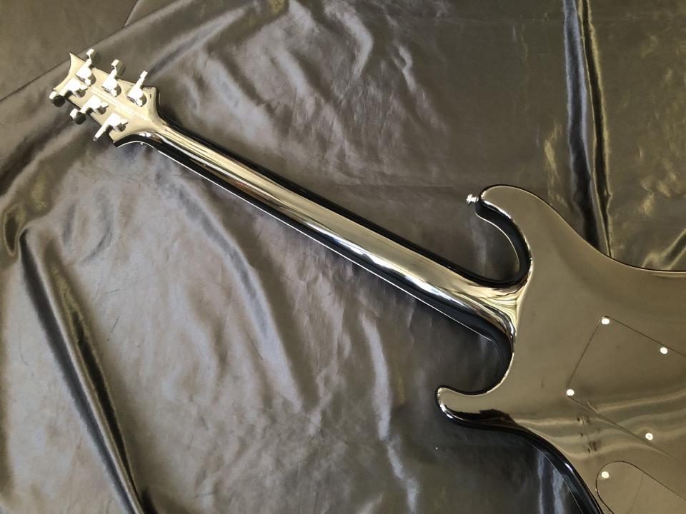 ネック材にはメイプル、指板にエボニー材を採用し、スルーネック構造にてボディと接合されています。
