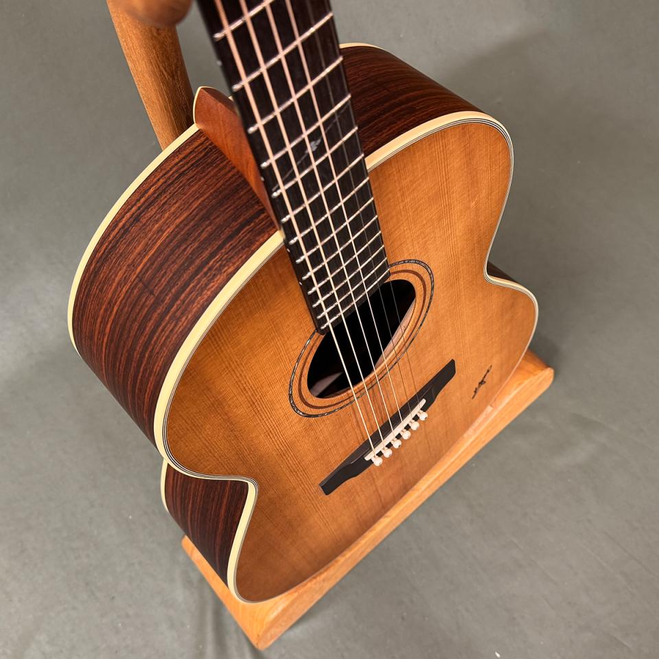 スプルース単板トップとローズウッドS&Bによる明瞭な立ち上がりと豊かな響きが特徴です。