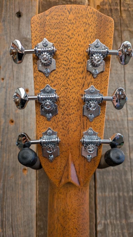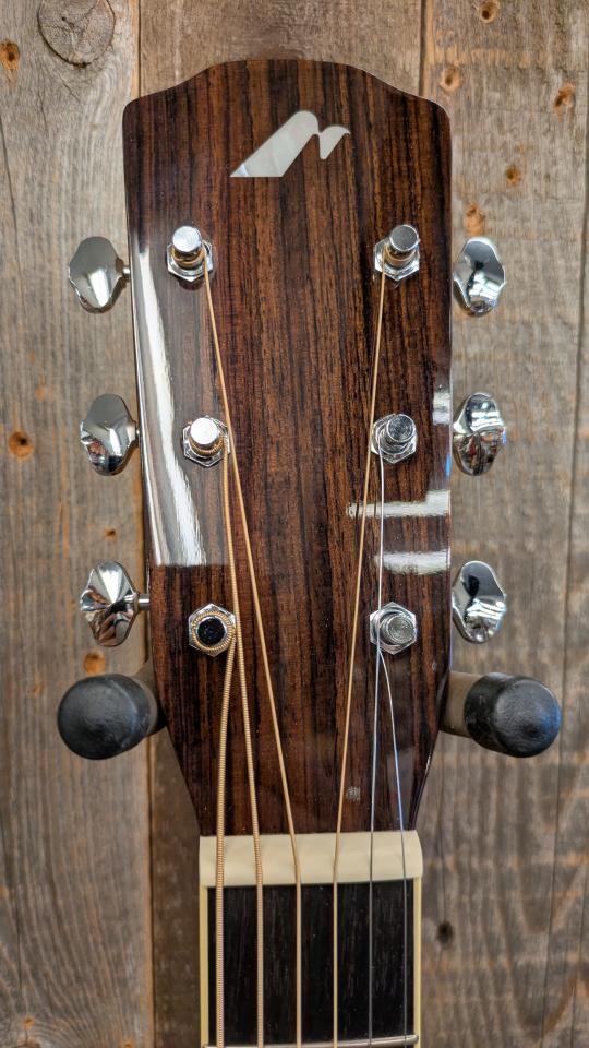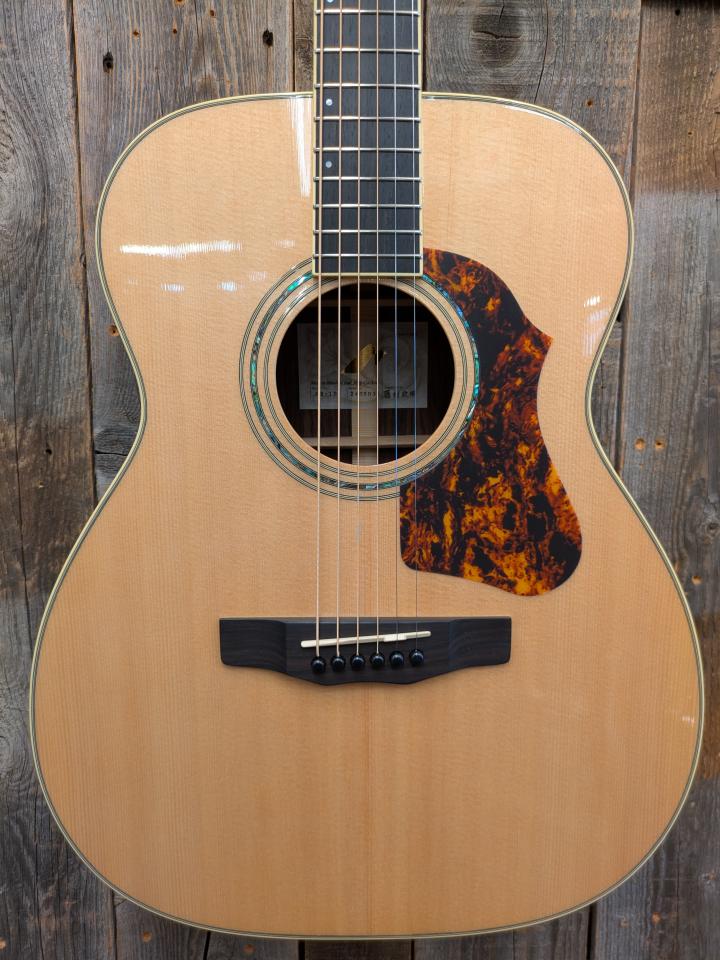 シトカ・スプルース単板の表甲にフォワードシフテッドXブレイシング、