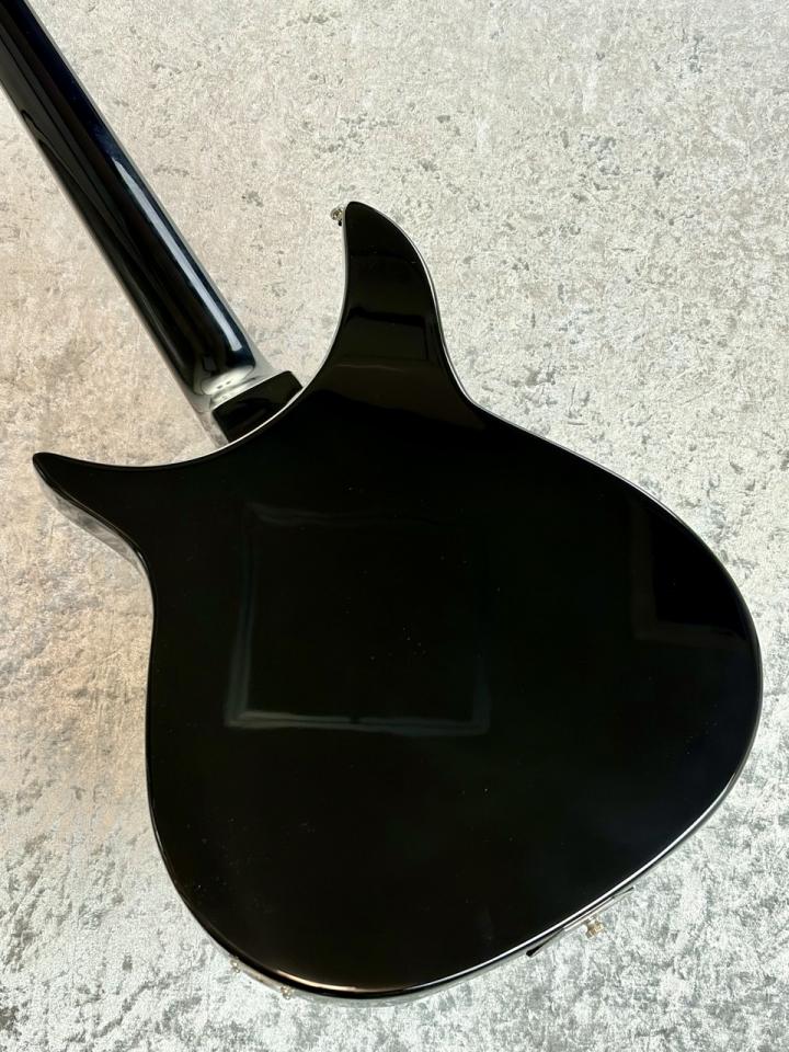 ボディにはメイプル材を採用したセミホロウ構造を採用。これにより、アタックの明瞭さとエアー感のある鳴りが絶妙にブレンドされ、Rickenbacker特有の煌びやかで立体的なトーンを生み出します。