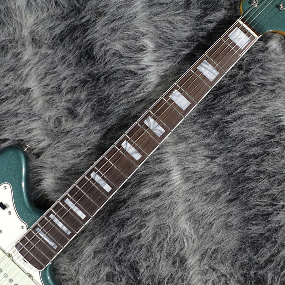 ホワイトネックバインディング、パールブロックインレイ、Fender Deluxeチューニングマシン、そしてカスタムカラーモデルにはマッチングヘッドを備えるなど、1966年生産のJazzmasterの特徴を纏ったギターとなっています。