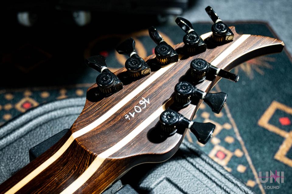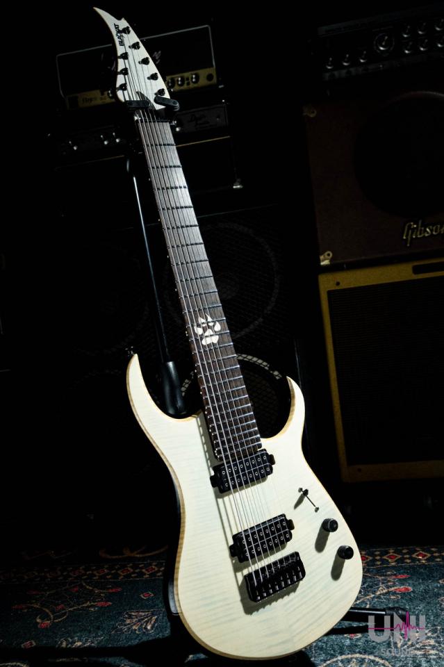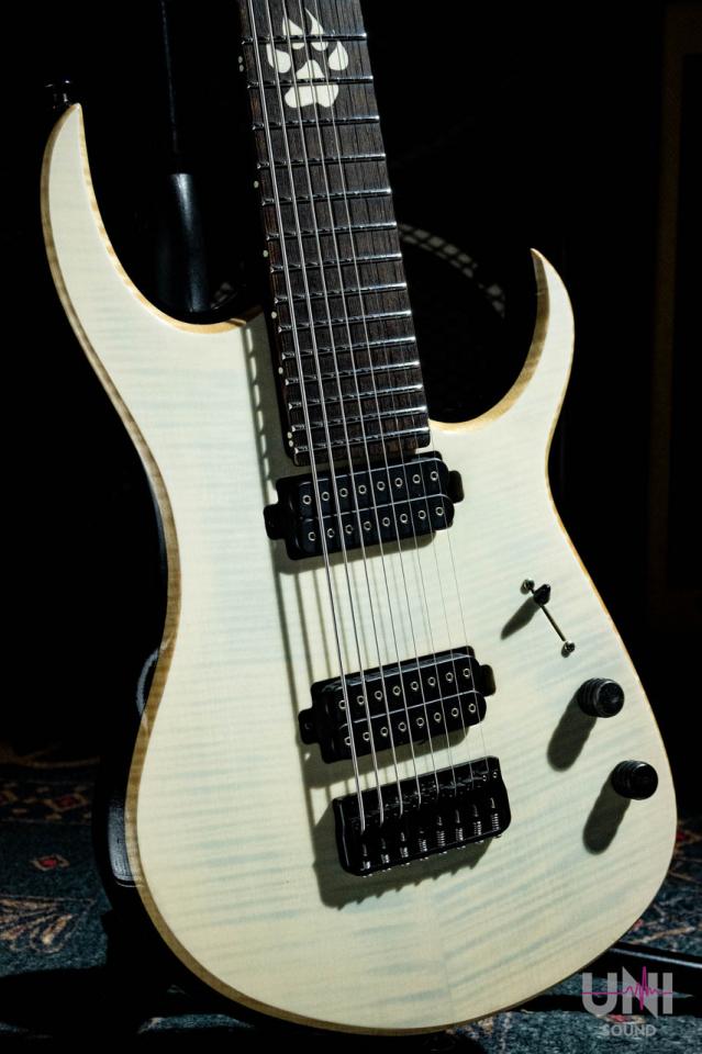 27インチスケール×8弦、ウェンジネック+DiMarzio Ionizer搭載の本格モダンメタル仕様。