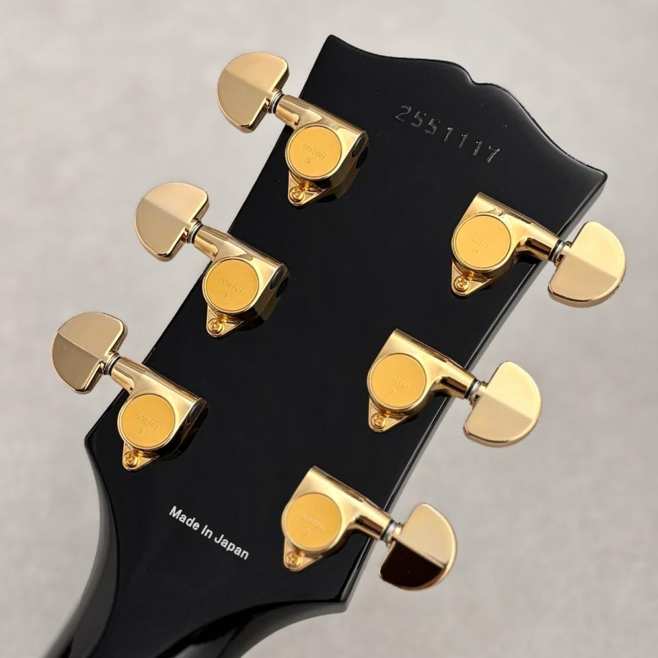 マホガニーネック、エボニー指板、メイプルトップにマホガニーバックのレスポールカスタムタイプとなっており、