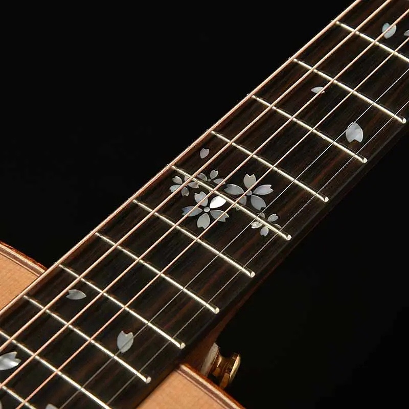 「零れ桜」の名にふさわしく、アコースティックギターの側面と背面にあたるサイドバックには、国産の桜材を使用。