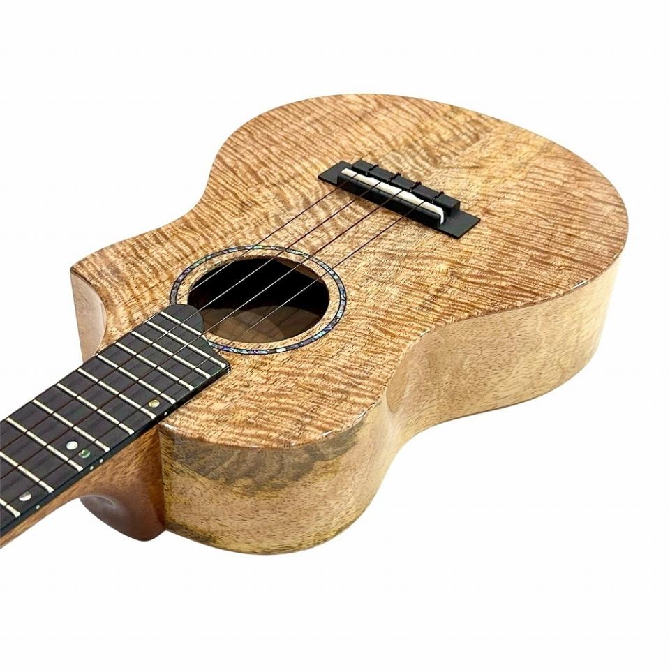 明るく抜けの良いトーンの中に、ふくよかで厚みのある響きを併せ持ち、テナーサイズならではの豊かな音量と包容力を感じさせます。軽快なアタックから甘く伸びる余韻まで、マンゴー材の持つ多彩な表情が楽しめるサウンドです。
