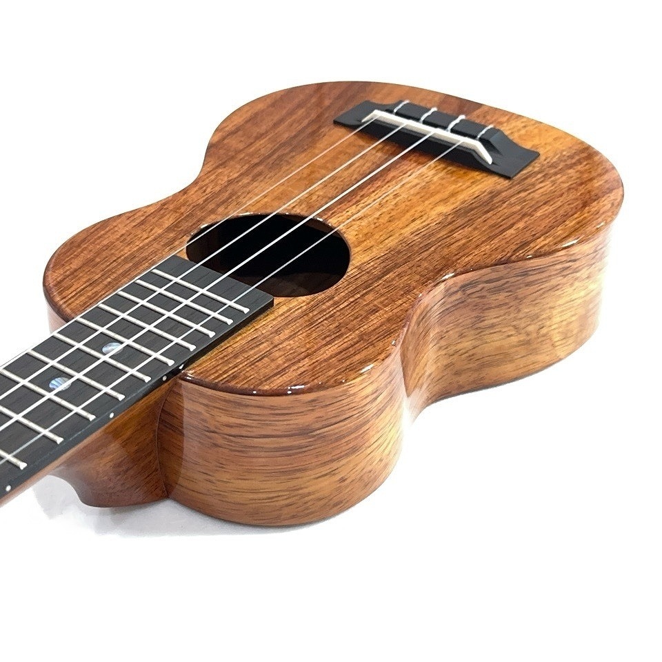 クラウン・ヘッドストックとムスビ・サウンドホールのルックスから織り成す、弾いた時の明るいサウンドが多くの方に好評を頂いているハワイブランドKoAloha。
